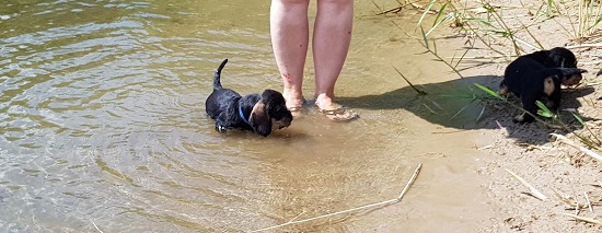08.07.18 – Jetzt sind die Lütten von Fiene schon 5 Wochen alt, die ersten Welpen Besitzer waren schon da. Die Welpen sind den ganzen Tag draußen und genießen das schöne Wetter. Nun lässt Fiene die Lütten auch schon mal länger alleine. Macht aber immer wieder Kontrolle