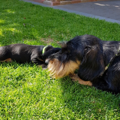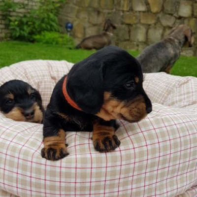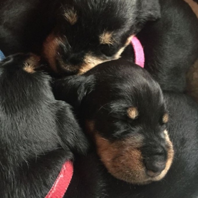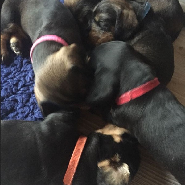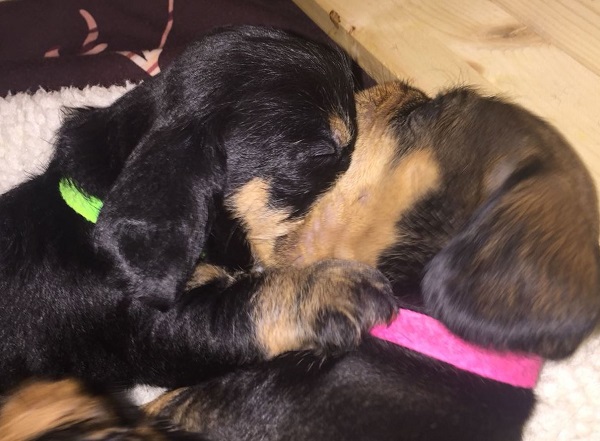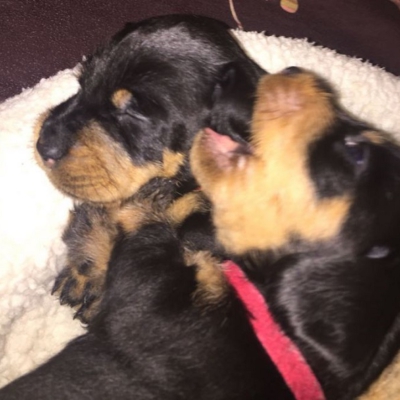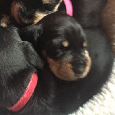 Wir freuen uns riesig über sechs gesunde Welpen in den Farben schwarz-rot und dunkel- saufarben. Ein Welpe hat es leider nicht geschafft und kam leider tot zur Welt.